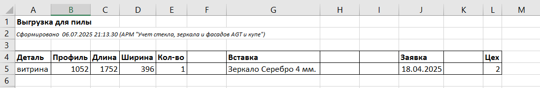 Данные о заявке также будут выводиться в отчете «Выгрузка для пилы».