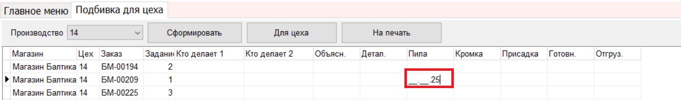 Режим «Подбивка для цеха» предназначен для актуализации статуса заказа между производством и системой.