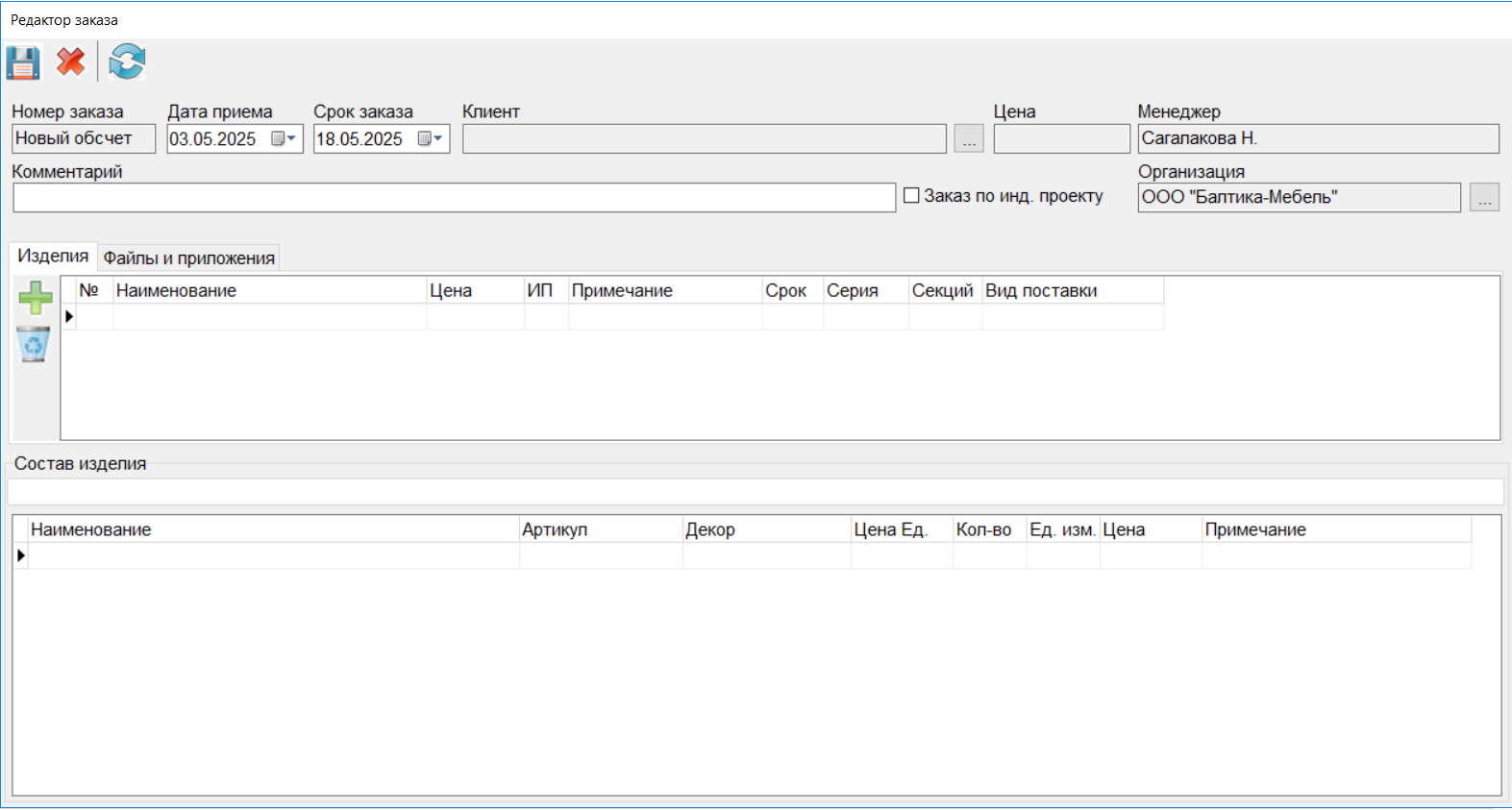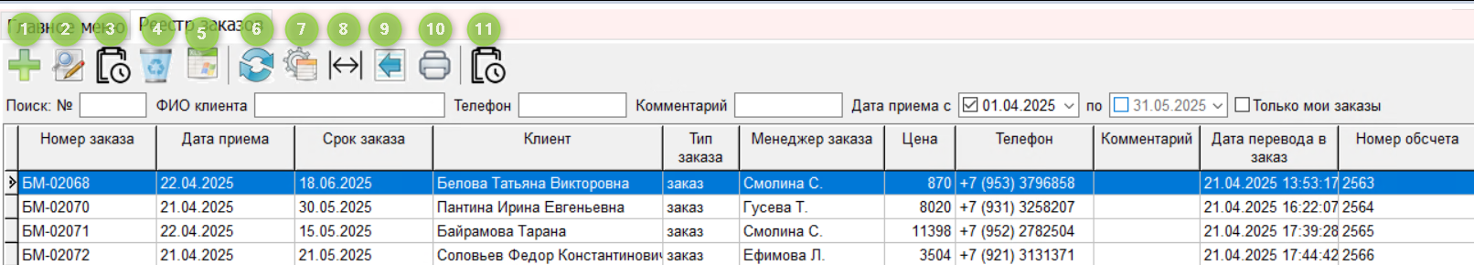 Режим работы «Реестр заказов» предназначен для приема и оформления заказов клиентов.