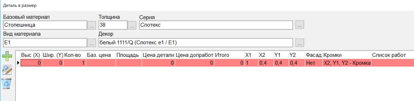 4.1.1 Если выбран вид изделия «Детали в размер», то далее необходимо заполнить данные о деталях в редакторе деталей.
