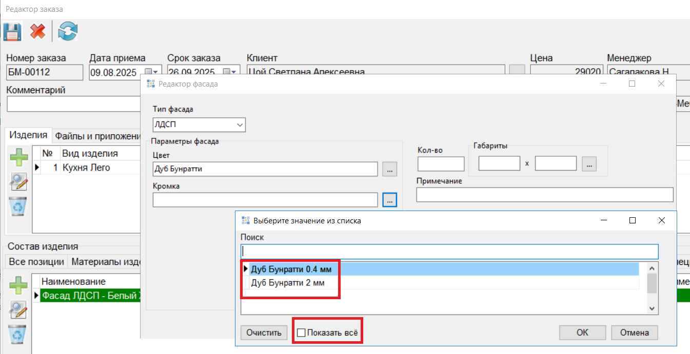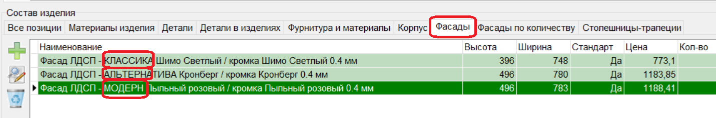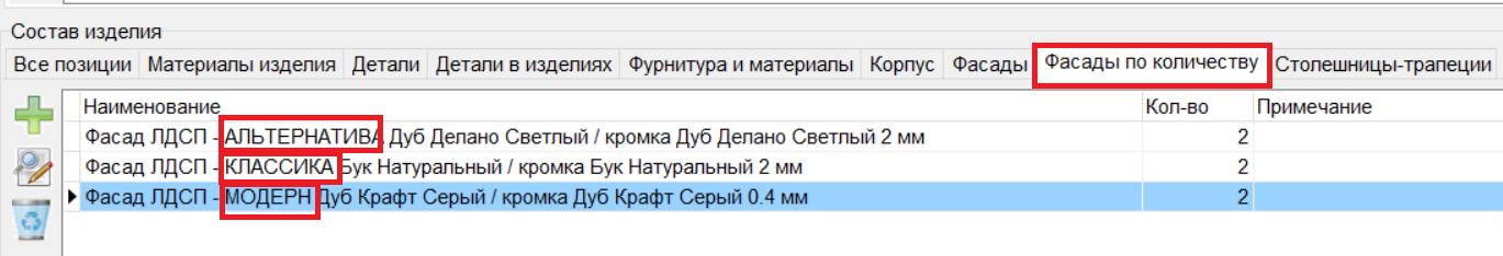 6. В режиме "Фасады по количеству" и "Фасады" для фасадов из ЛДСП в название перед названием материала добавлено отображение его серии. (#8153)