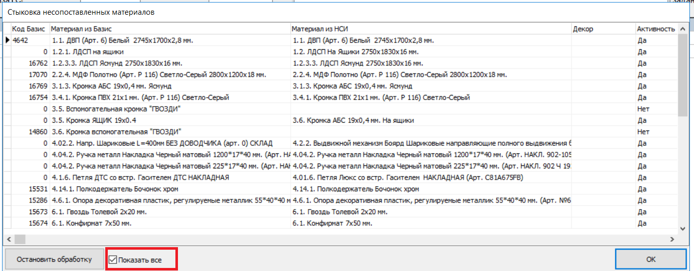 7. При сопоставлении материалов после загрузки XML настроено, чтобы галочка «Показать все» была установлена по умолчанию. (#8170)