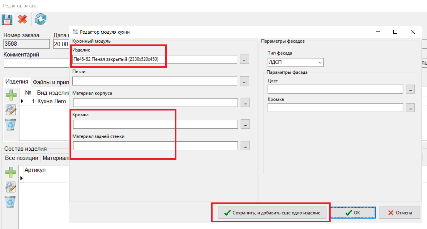 - В редакторе изделий при добавлении изделия добавлена кнопка "Сохранить, и добавить еще одно изделие". При ее нажатии текущее изделие сохраняется, и сразу открывается окно добавления нового