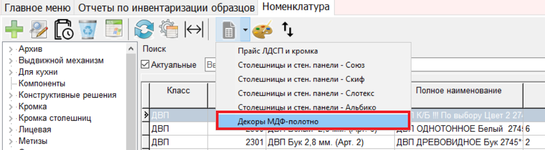 - Добавлен в раздел "Номенклатура - Отчеты" дополнительный отчет "Декоры МДФ-полотно".