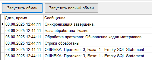 1. Устранена ошибка при запуске Обмена с Базис. Теперь, если в протоколе один из запросов пустой, он не выполняется, ошибка не выводится. (#8138)