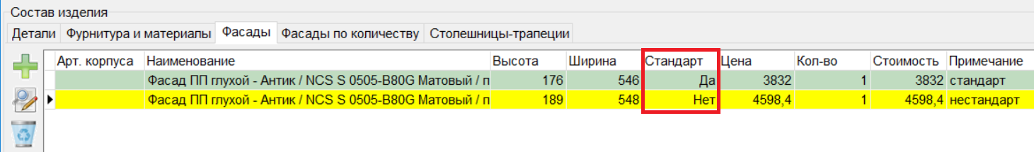 9. Внесены изменения по фасадам в допдеталях, при ручной установке размера на фасад признак "Стандарт" сейчас устанавливается корректно.