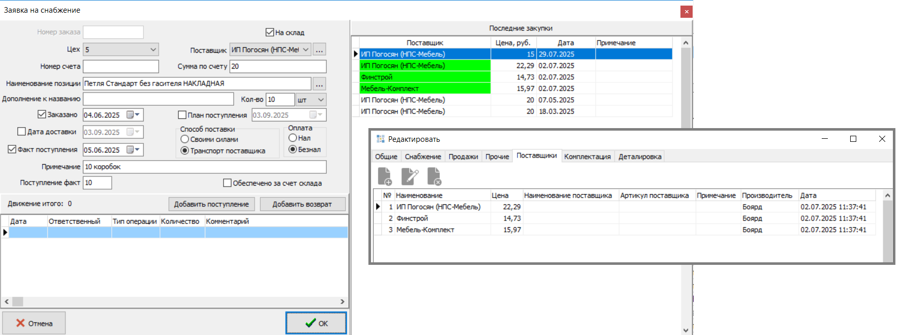 11. Изменен порядок сортировки поставщиков в списке в заявке на снабжение, сейчас кроме даты учитывается еще приоритет поставщика. (#8192)