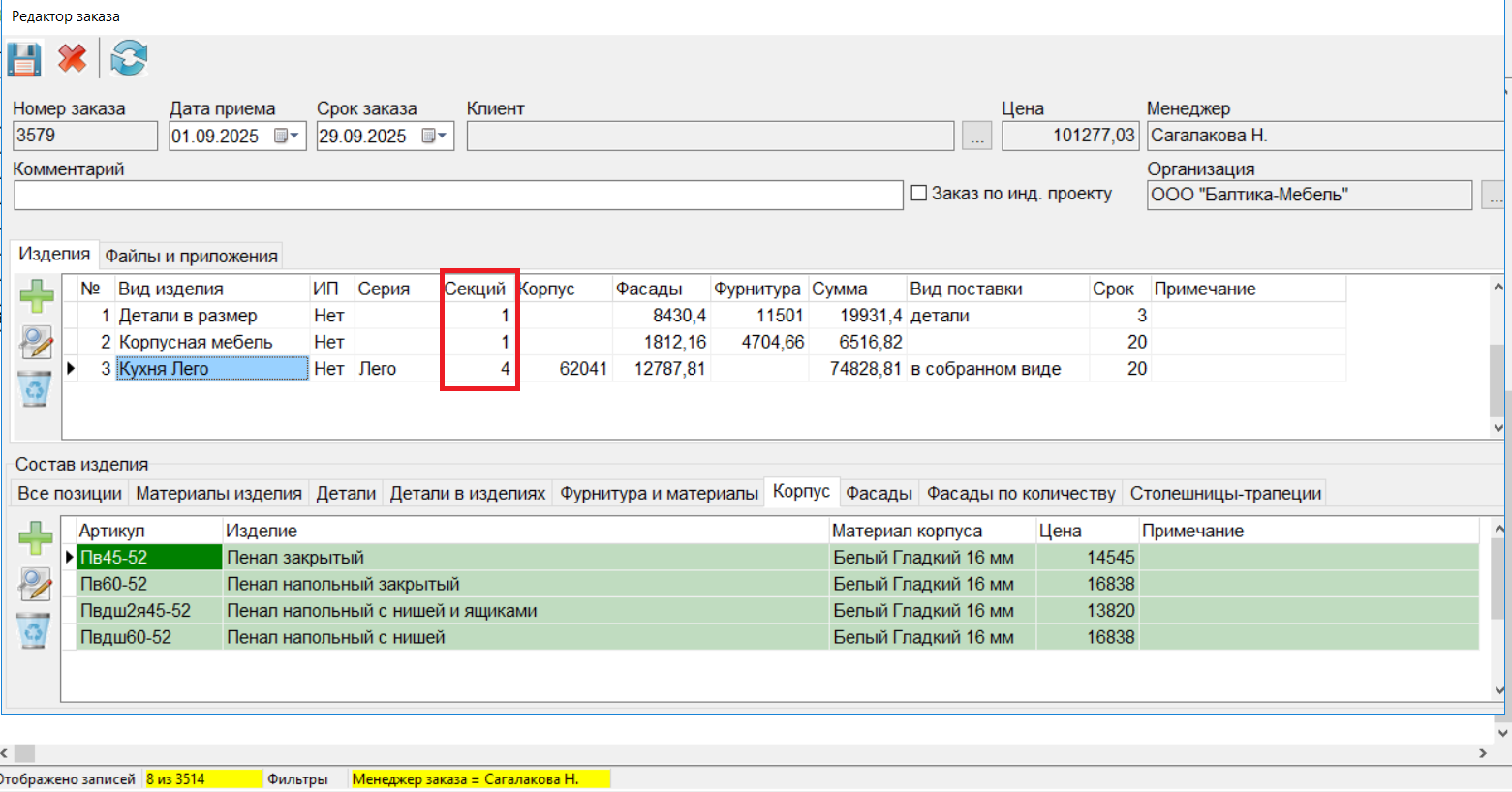 3. Устранена ошибка, устанавливалось некорректное количество секции при наличии в заказе нескольких видов изделий. (#8193)