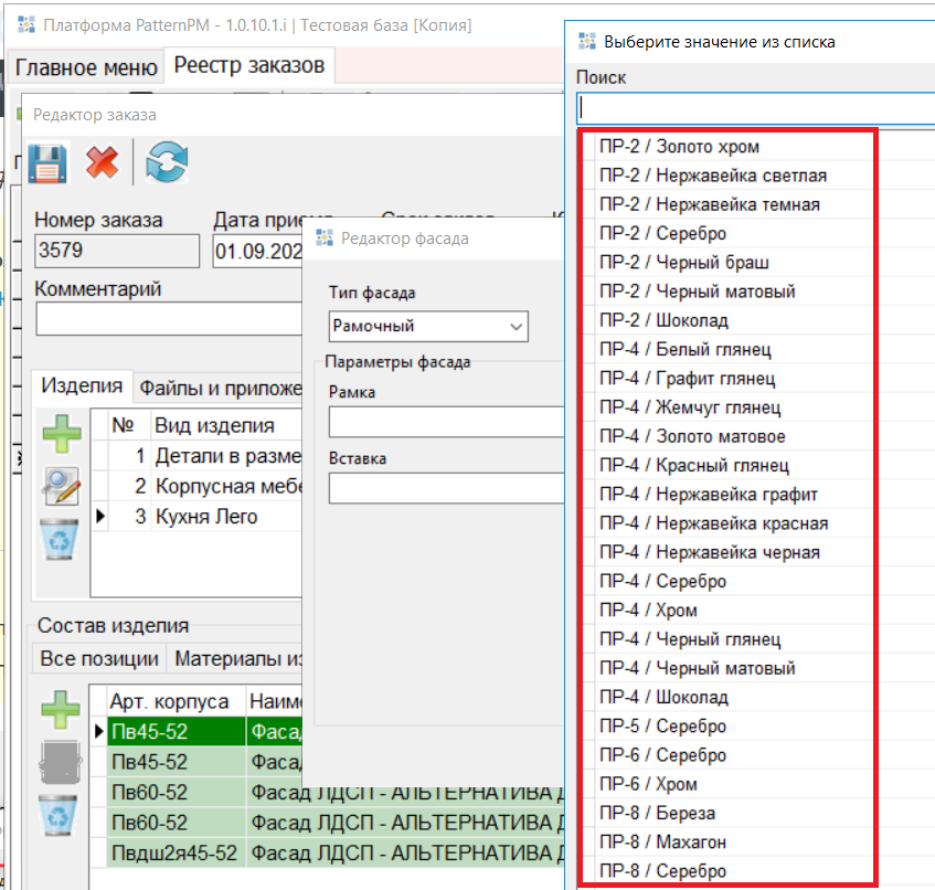 4. Изменен порядок наименования материала для рамочных фасадов на порядок "Вид материала" / "Материал". (#8194)