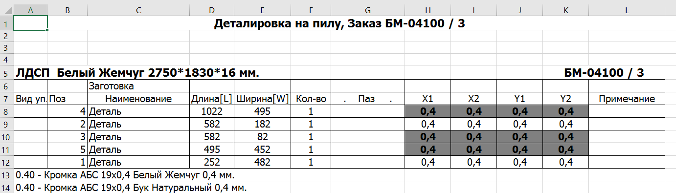 3. Доработана процедура, сейчас при переносе деталей из заказа продаж признак другого цвета у кромки проставляется. Такие кромки выделяются жирным шрифтом в документе «Деталировка на пилу». (#8228)