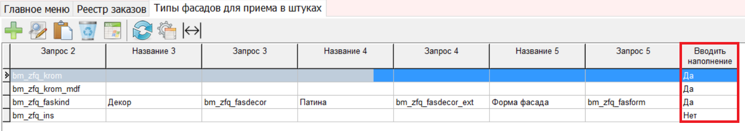 7. Добавлен новый параметр «Выводить наполнение» в справочник «Типы фасадов для приема в штуках».