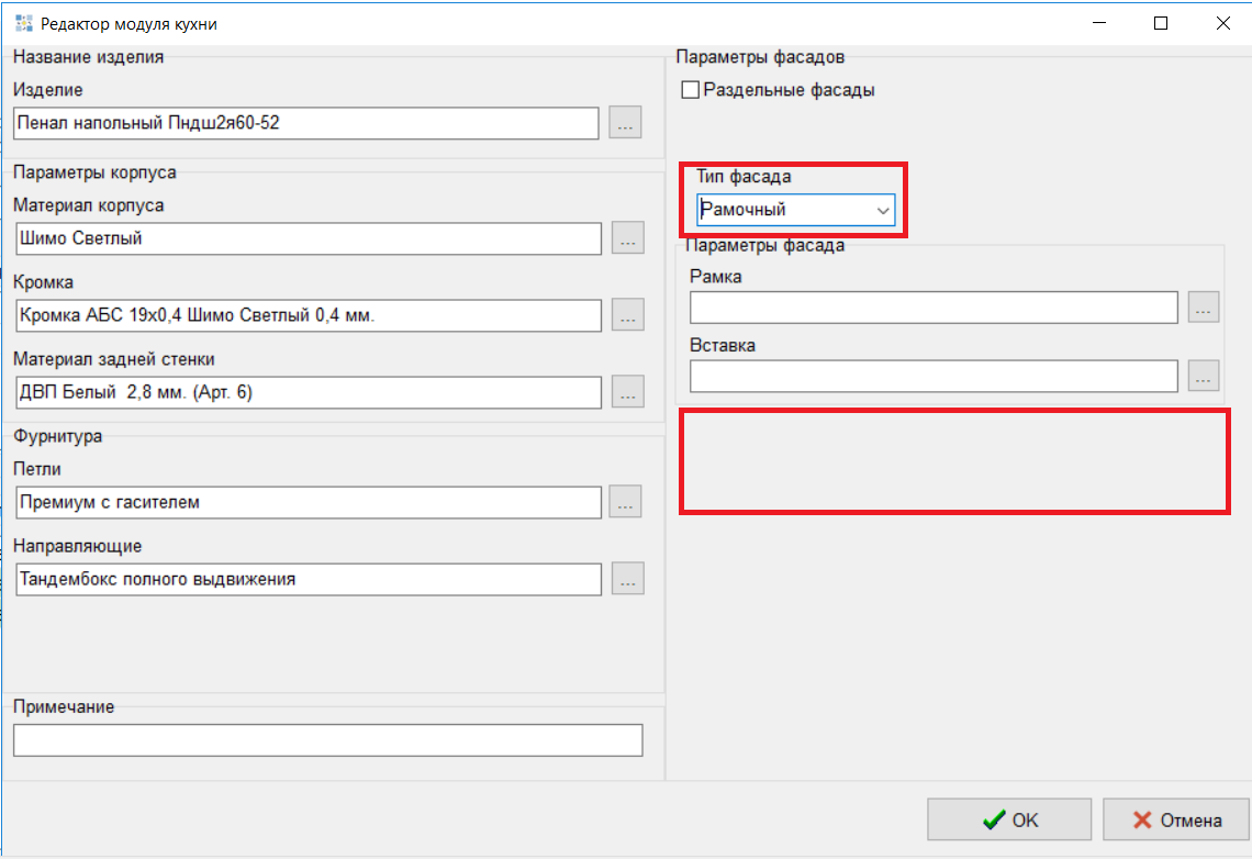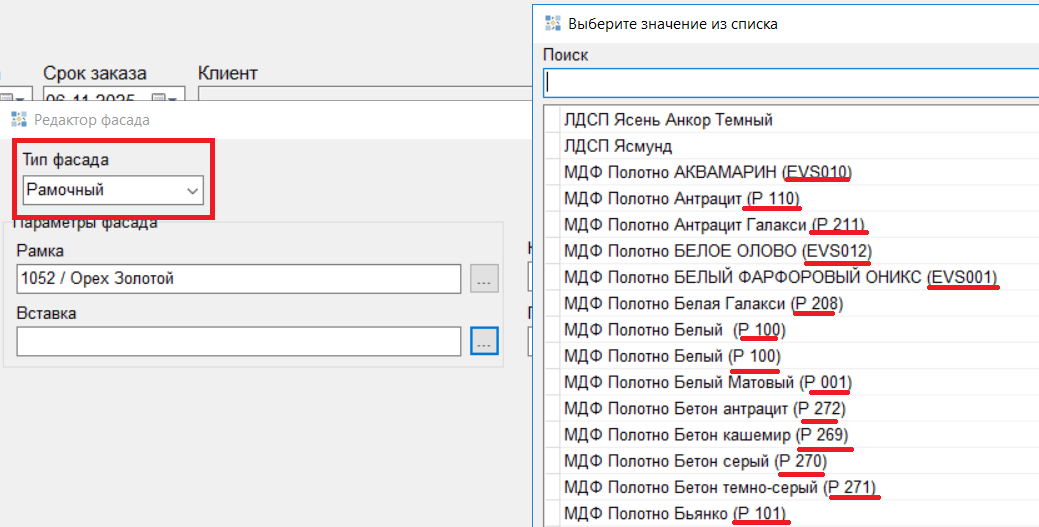 9. Добавлено выведение артикулов у МДФ полотна при выборе вставки в рамочных фасадах. (#8253)