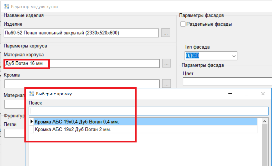 - При выборе кромки корпуса отображается кромка, подходящая по цвету ЛДСП, внизу добавлен флаг «Показать все». (#8252)