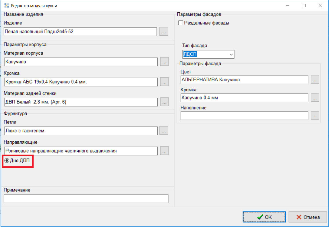 В справочнике «Виды направляющих» добавлены реквизиты «Дно ДВП» и «Дно ЛДСП», варианты заполнения Да/Нет.