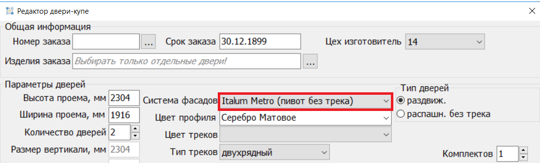При добавлении изделия в Заказ и выборе вида направляющего, если тип дна указан однозначно (указано значение «Да» только в одном типе дня), то тип дна выбран по умолчанию.