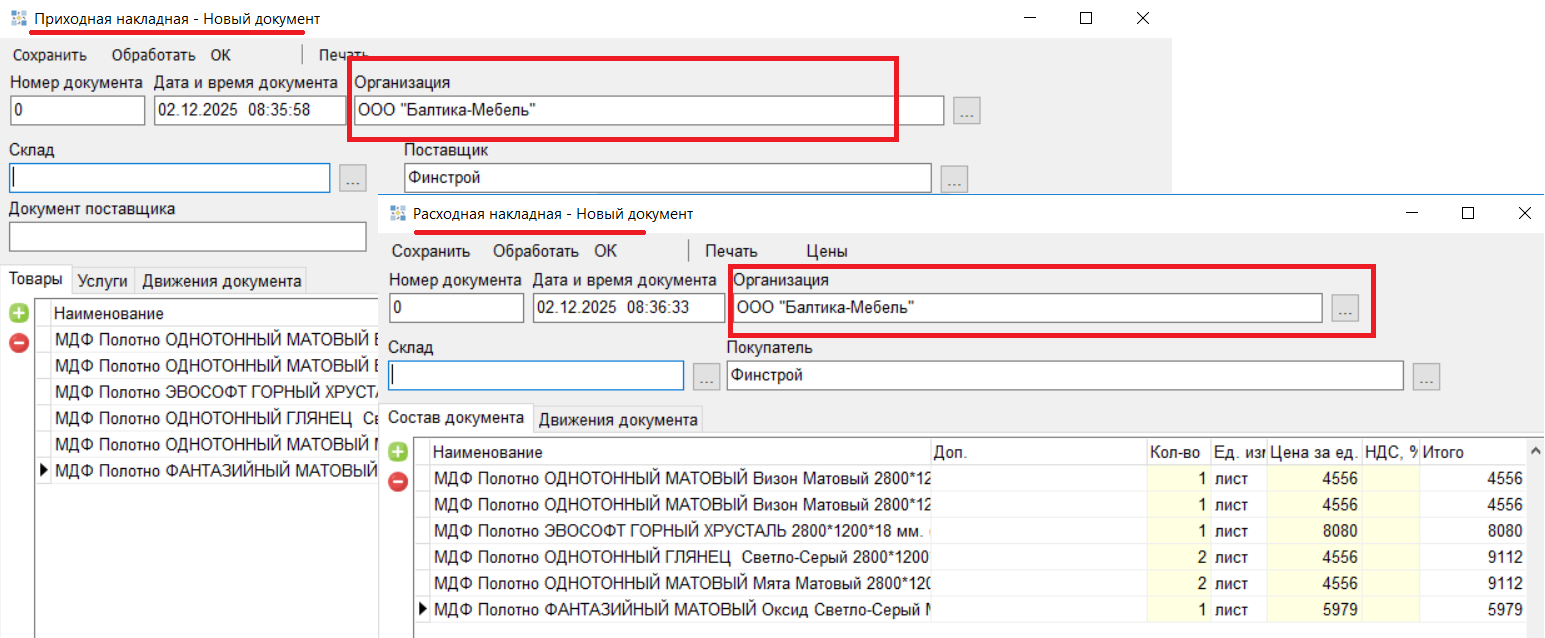 1.2 Добавлено отображение № заказа и декора в Заказе поставщику и в документах Приходная накладная/Расходная накладная.