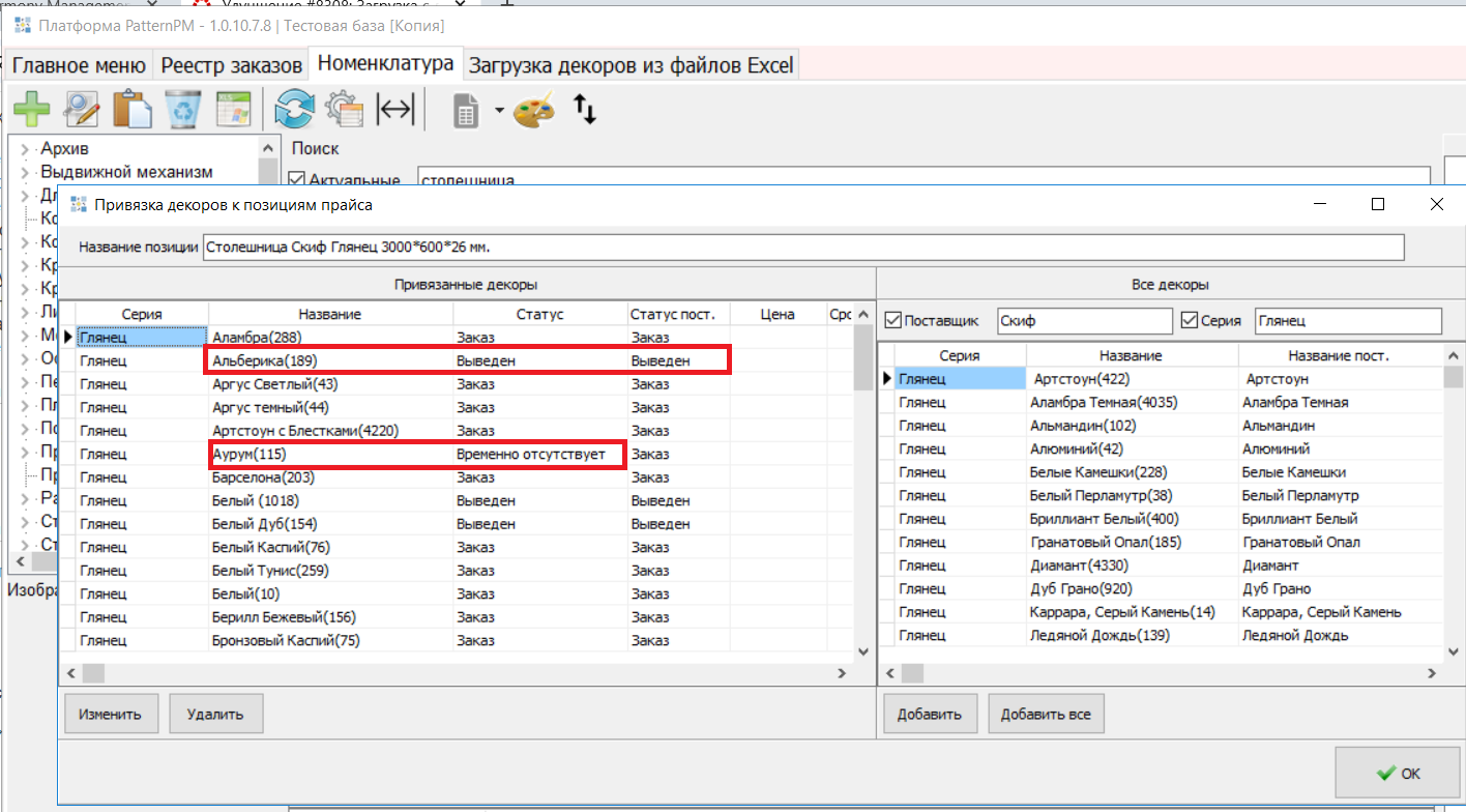 2.3 В блоке «Образцы» для декоров добавлен признак «Временно отсутствует». (#8308)