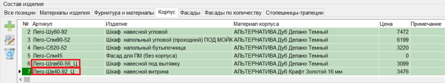 7.5 Добавлен дополнительный раздел «Фасады изделия». Он аналогичен разделу «Корпус» - в него выводятся все уникальные материалы корпуса.