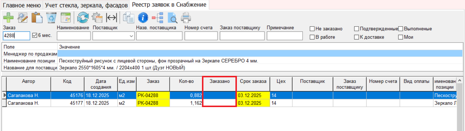 11. В Реестр заявок на снабжение добавлена колонка «Заказано», в ней отображается количество из Заказа поставщику. (#8377)