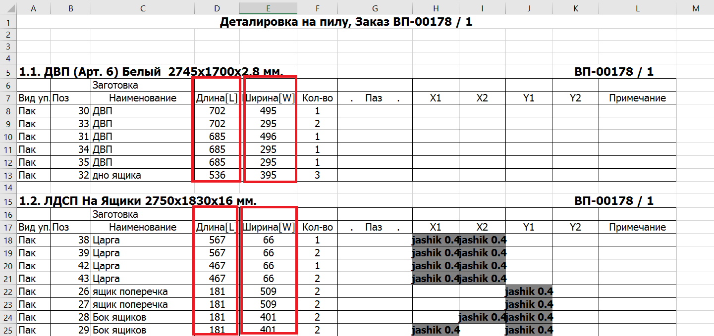 5. В отчете на пилу настроена сортировка деталей по колонке «Длина» от большего к меньшему и по колонке «Ширина» по убыванию. (#8441)
