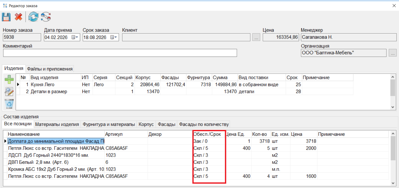 10. В Редакторе Заказа на вкладке «Все позиции» добавлена колонка со способом обеспечения и сроком поставки.