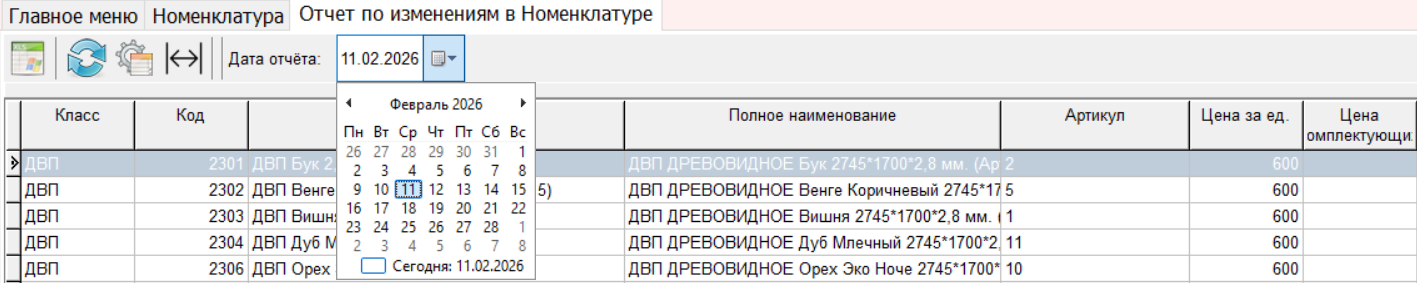 11.2 Разработан Отчет по изменениям в Номенклатуре.