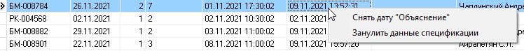 2.3. Для пользователя с правами "Администратор" в подсистеме учета стекла-зеркала в реестре заданий КБ добавлена возможность сбросить дату Объяснения и "занулить" параметры спецификаций. Это сделано для обработки старых заказов. Для этого нужно на задании щелкнуть правой кнопкой мыши, и выбрать соответствующий пункт меню.