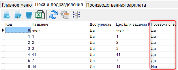 5. В справочнике Цехов добавлен признак "Проверка спецификации". Если его установить в значение "Нет" - то в производственной зарплате не будет выводиться ошибка "Пустые данные по спецификации"