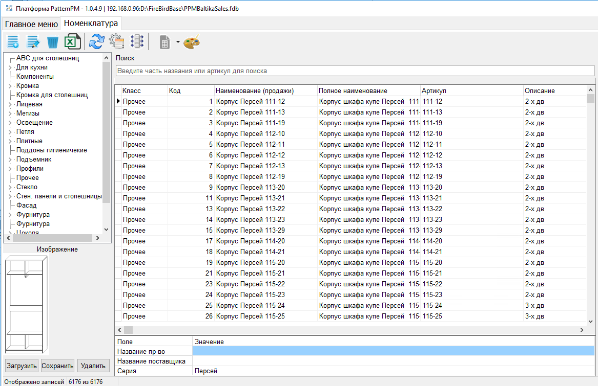 2. В справочнике номенклатуры добавлено дерево для оперативного перехода в нужный раздел, и реализован поиск по полному наименованию.