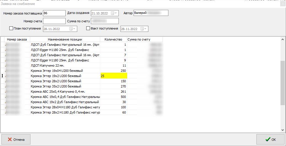 3. При копировании Заказа поставщику в буфер обмена - копируется также номер этого заказа для передачи Поставщику.