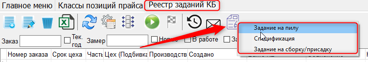 5. Реализованы первые версии заданий для производства - выгружаются из режима "Реестр заданий КБ" по соответствующей кнопке: