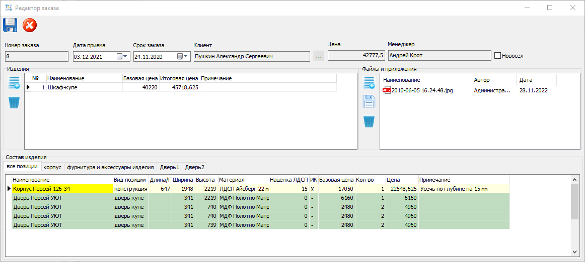 1. Редактор заказа переделан под новую структуру данных в соответствии с возможностью приема разных видов продукции в одном интерфейсе