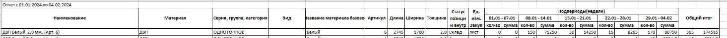 4. Реализован отчет по закупкам за период с раскладкой по подпериодам. (#7527)