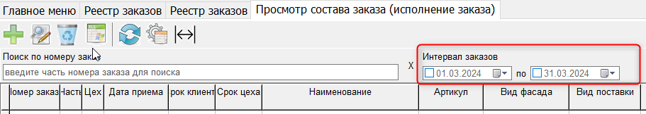 4.1. Добавлен отбор по периоду в режиме "Просмотр состава заказа (исполнение заказа)".