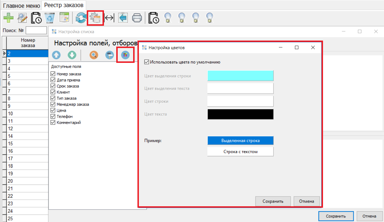 1. Доработан блок настроек полей, отборов, сортировок. Добавлена возможность управления цветом выделения строки, текста. (#7054)