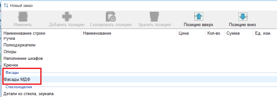 1. Создан редактор для фасадов, может вызываться как из спецификации, так и в редакторе заказа со вкладки «Фасады».