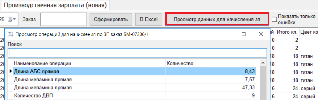 1. В режиме Производственная зарплата (новая) добавлена кнопка "Просмотр данных для начисления зп". При нажатии на кнопку на экран выводится содержимое таблицы с операциями для начисления зарплаты по данному заказу. (#7803)