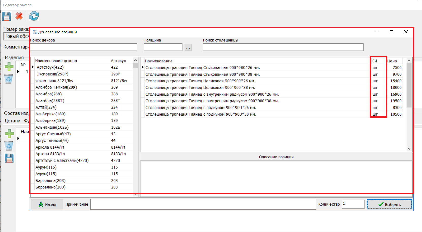 5. Изменен интерфейс приема столешниц-трапеций: подбор декора размещен слева, удалено отображение габаритов, добавлена колонка «единицы измерения». (#7814)