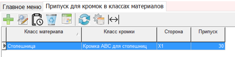 1.1 Создан справочник «Припуск для кромок в классах материалов».